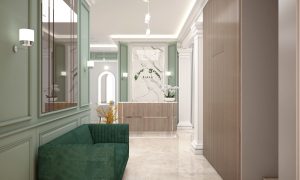Still the familiar color palette of nature: white – blue – wood, but delicately processed with a modern breath. Open space, filled with light. Round mirrors, hanging lights, soft geometric shapes make everything comfortable, gentle but luxurious enough for customers to feel appreciated.