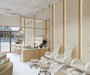 A common mistake when designing a nail salon is to focus too much on the visual aspect and forget about the flow and behavior of technicians and customers. In this space, I spent a lot of time just to… “rehearse” and simulate actions: from the moment the customer enters – is invited to sit – chooses nail polish color – does the service – washes hands – pays – waits for a companion…
