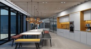 - Open in space – with abundant natural light, transparent glass, connecting individual workspaces with shared interactive areas.