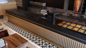 3. Waiting shelves – grab & go area: closed and coherent design to avoid congestion.