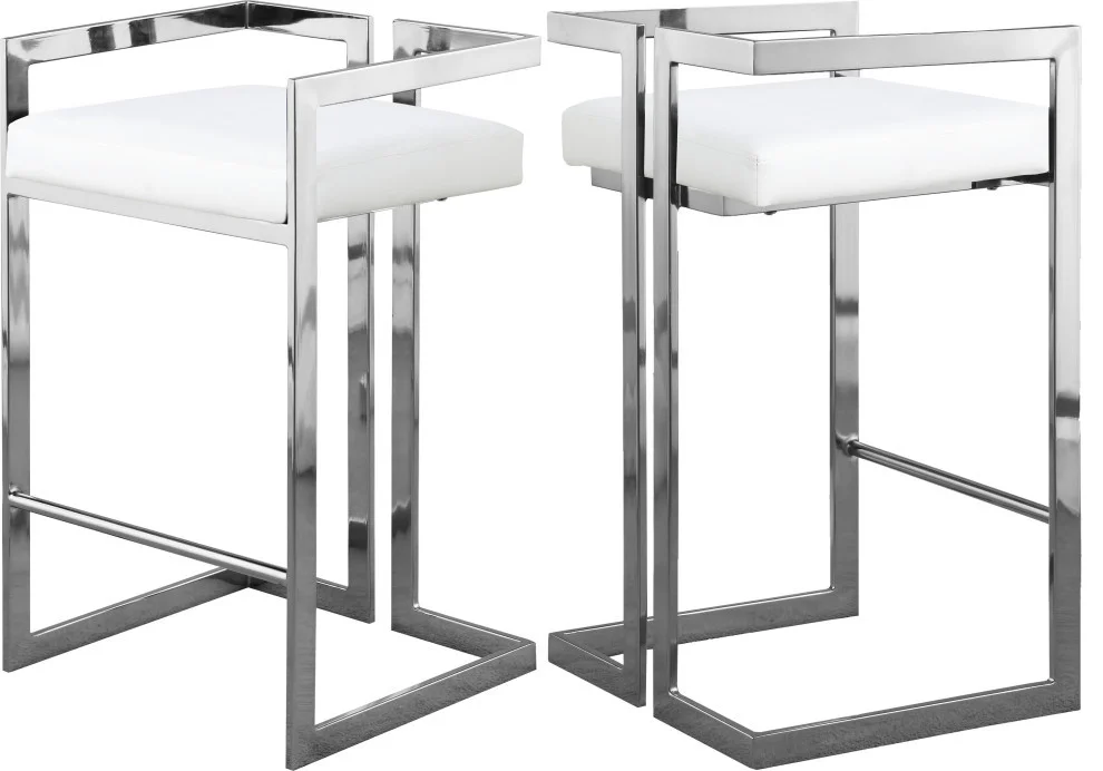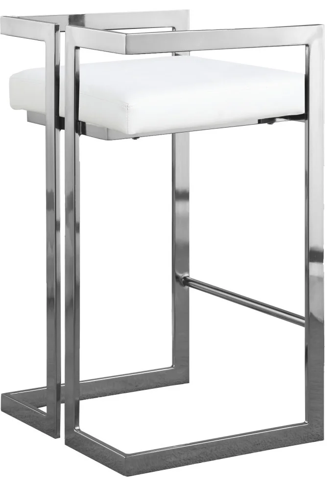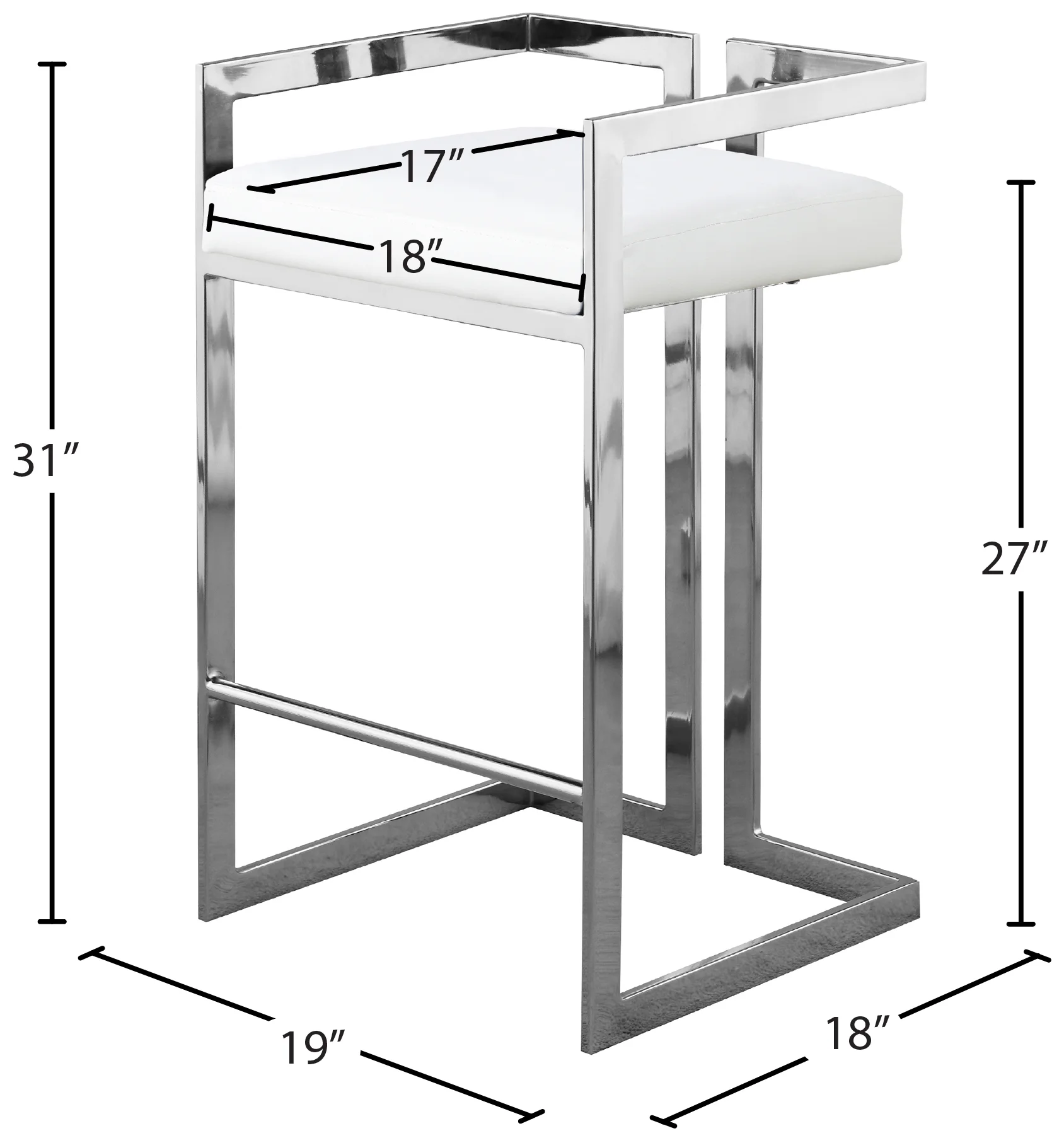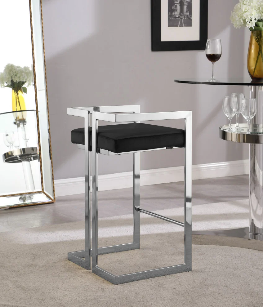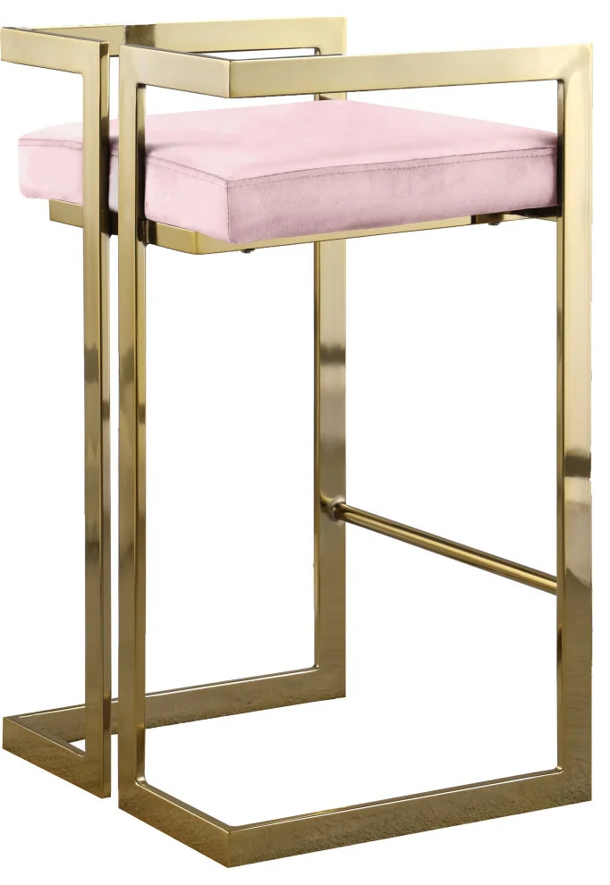 Impress guests with this Ezra Pink Velvet Counter Stool. The boxy design is contemporary and uber chic, ensuring that the stool is a good fit in your modern home, whether you use it at the kitchen counter or home bar. A minimalist design makes this no-nonsense stool an unassuming addition to your space. The goldtone metal frame is robust and strong, so it can handle daily use without breaking a sweat. A plump seat cushion tops the stool and is upholstered in pink velvet material for a soft, luxe feel.