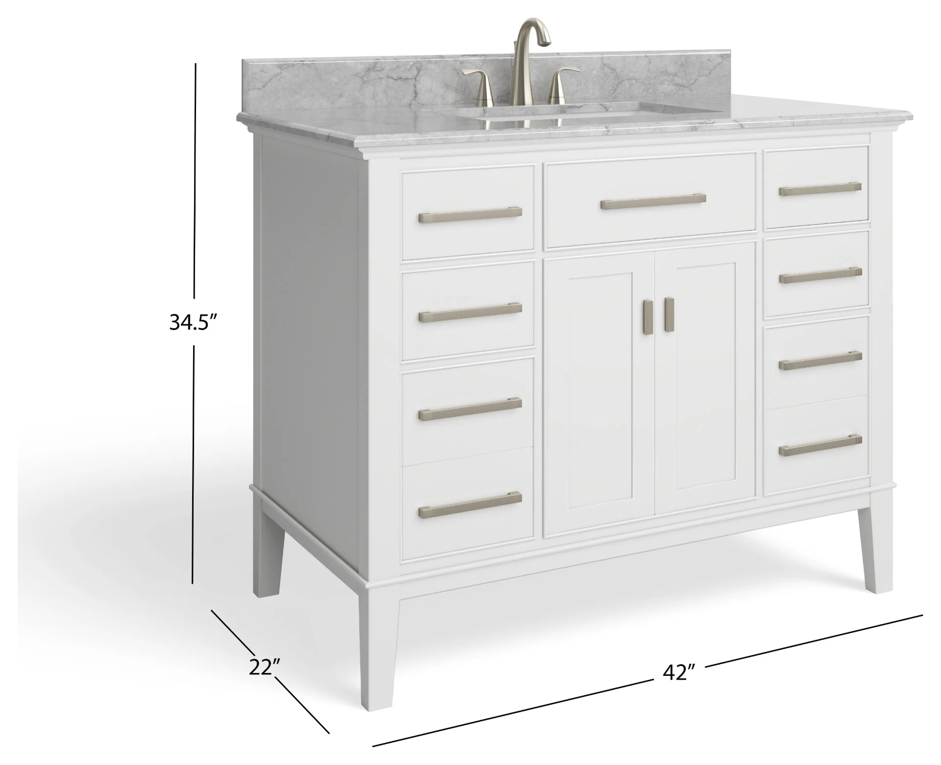 - Includes countertop, sink, backsplash, and cabinet hardware