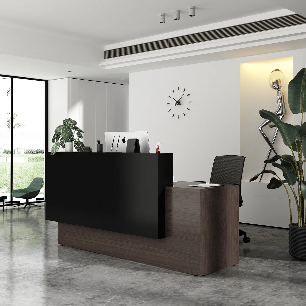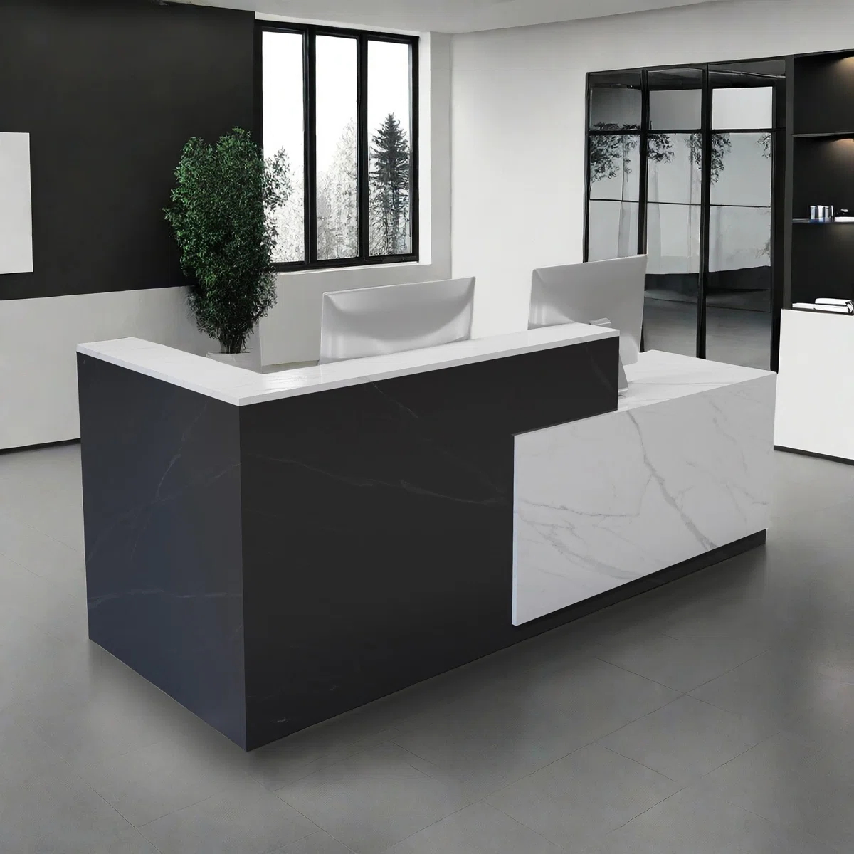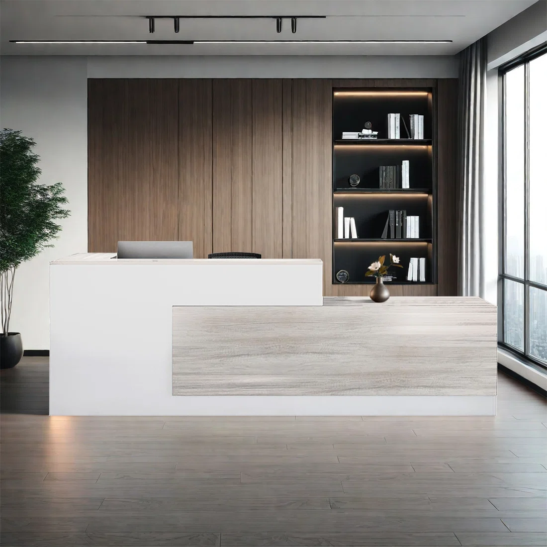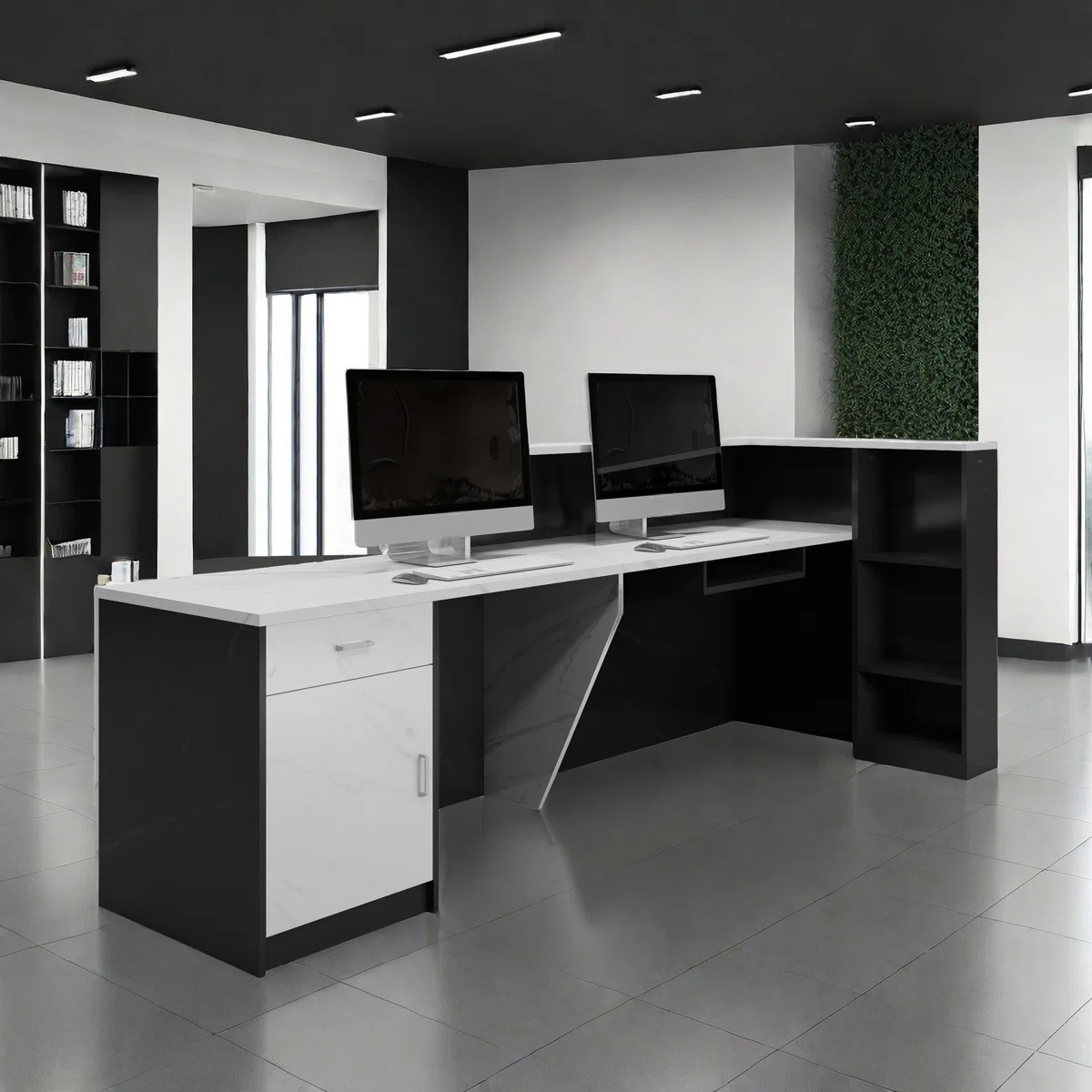 - [Spacious desk]: This reception desk gives you and your visitors a more spacious space for personal items. This desk also set up a wiring trough to facilitate your installation of computers and other wires. On the one hand, the high front design allows visitors to stand comfortably, and on the other hand, it also provides you with storage space for personal items.