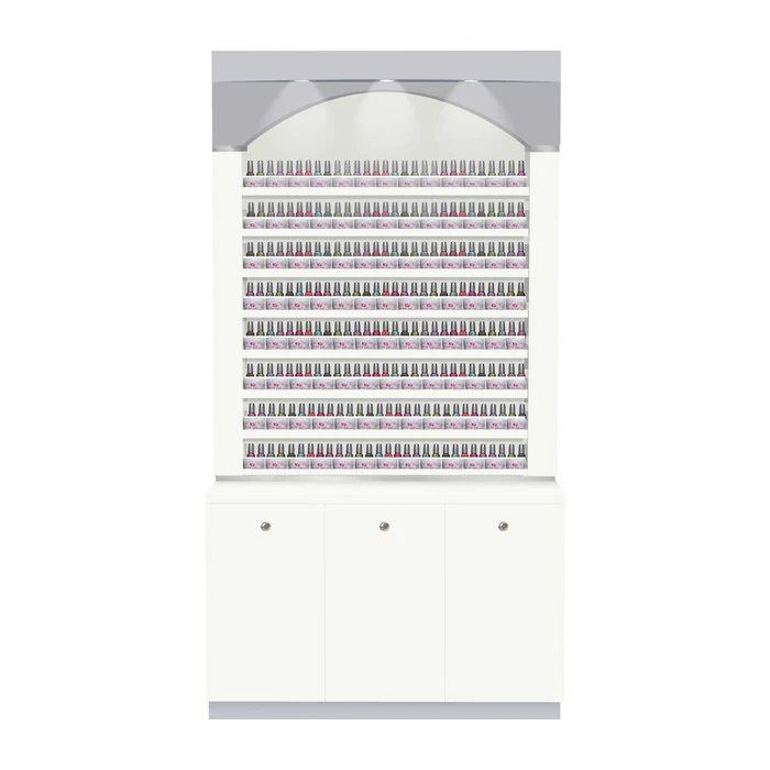 - Top racks hold approximately 232 polish bottles & 104 powder jars