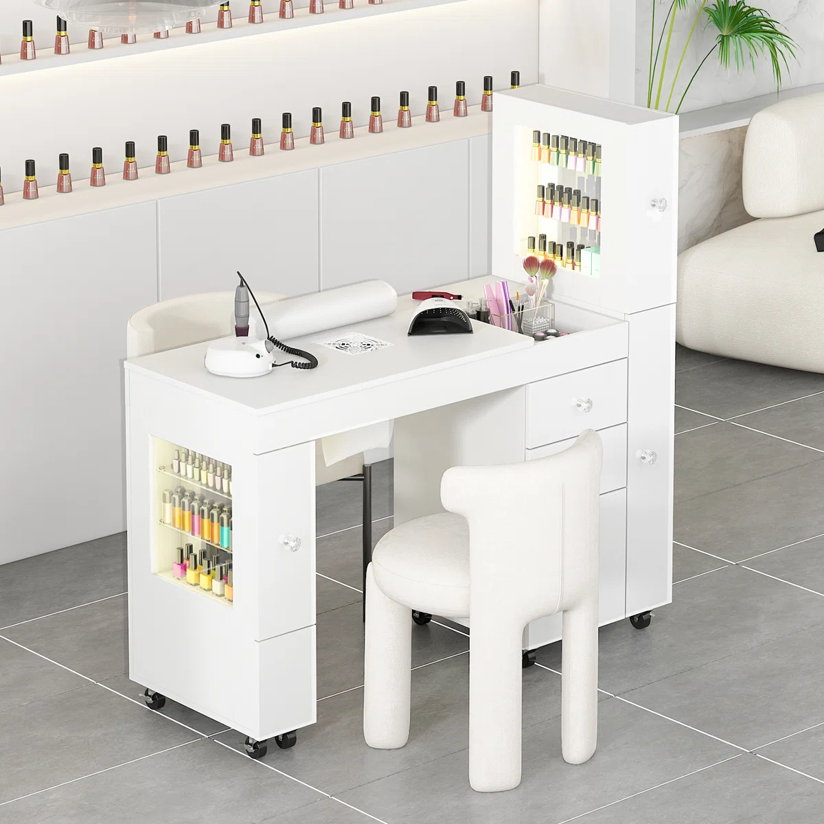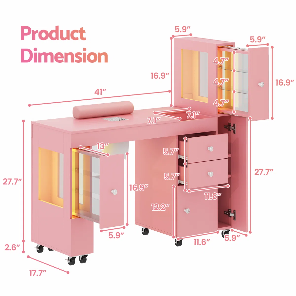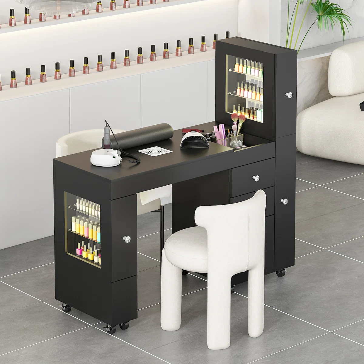 - Ample Storage Options: The manicure table includes various drawers, cabinets, open shelves, and display cabinets, allowing you to easily organize and store all your nail products and tools.