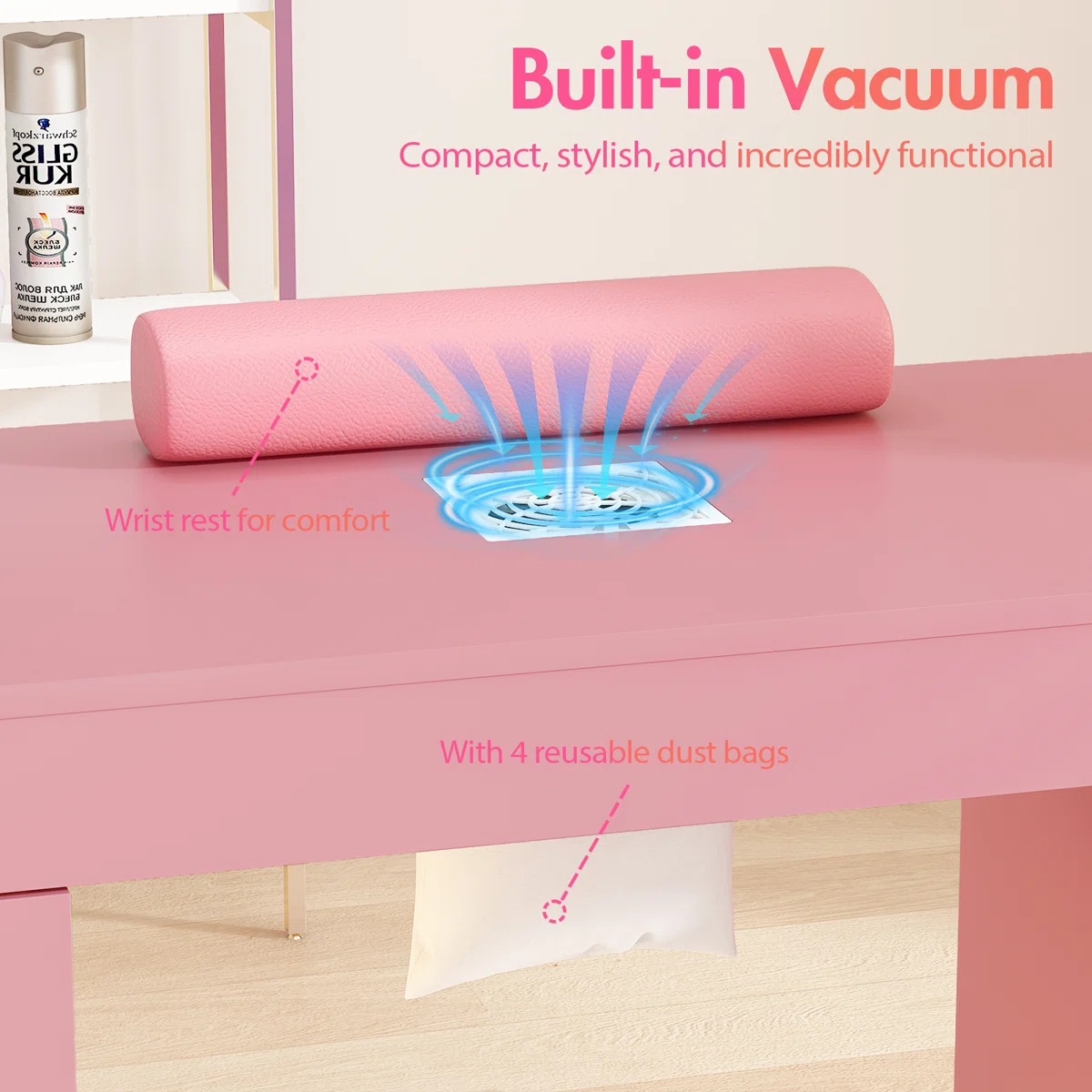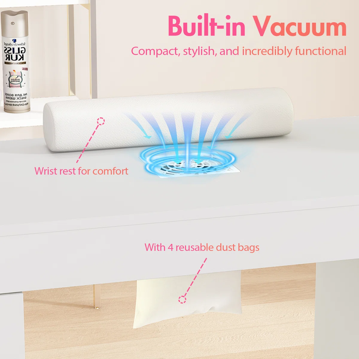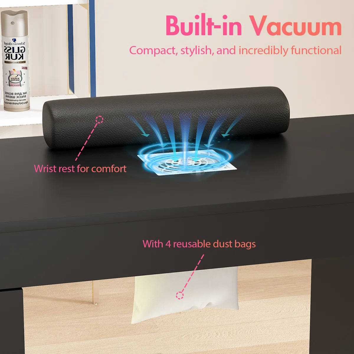 - Built-in Dust Collector: The nail desk comes with an integrated dust collection system and four dust bags, ensuring your workspace remains neat and free from debris.