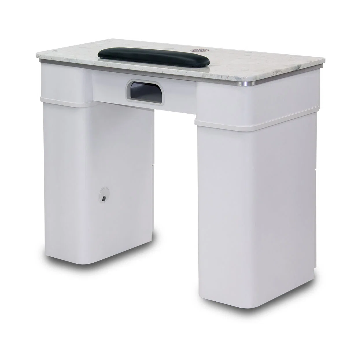 Sonoma single manicure table has the ideal space for manicurists. With 1 open space and a center space with pull down opening. The space on this single manicure table has enough room to hold all products needed for any manicure.