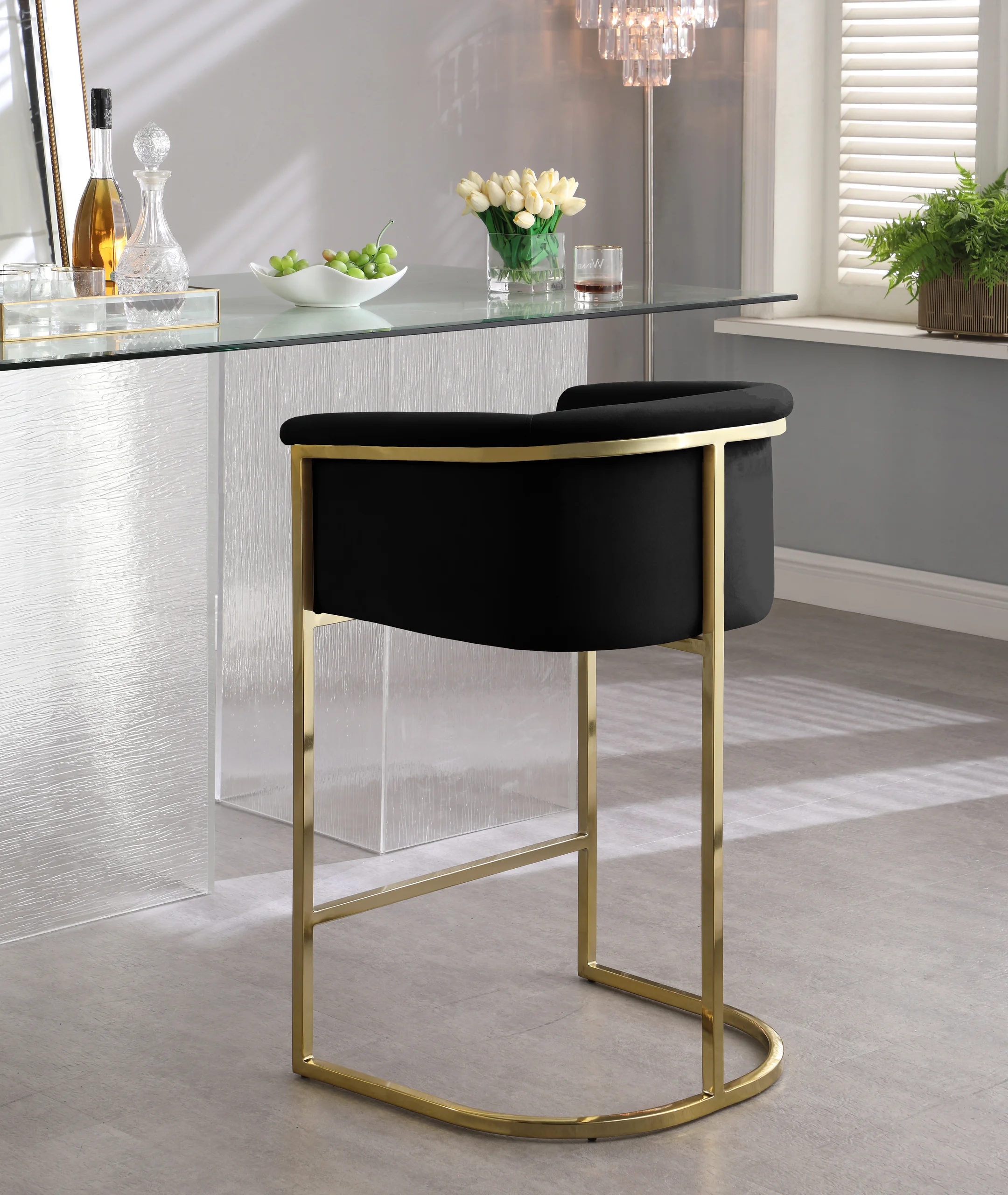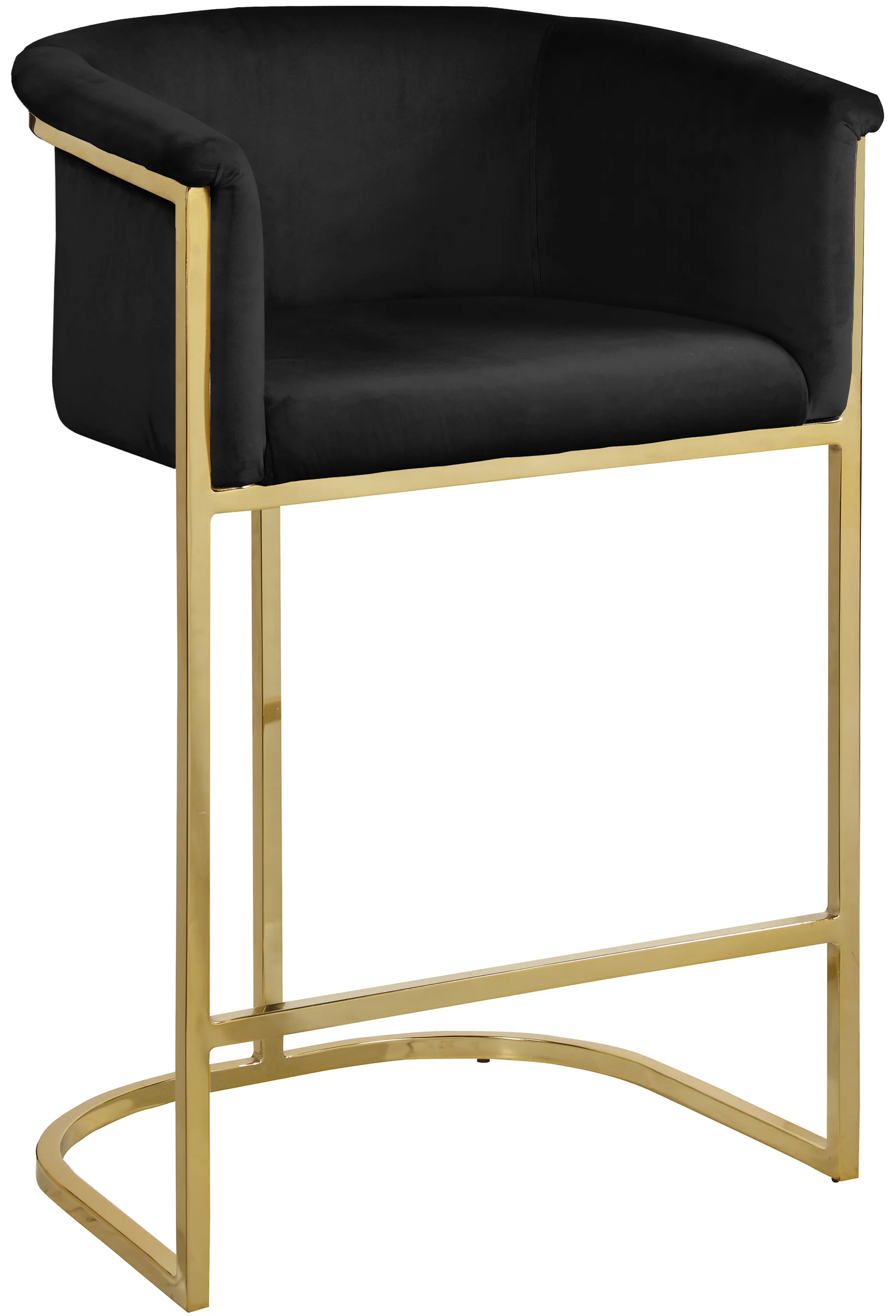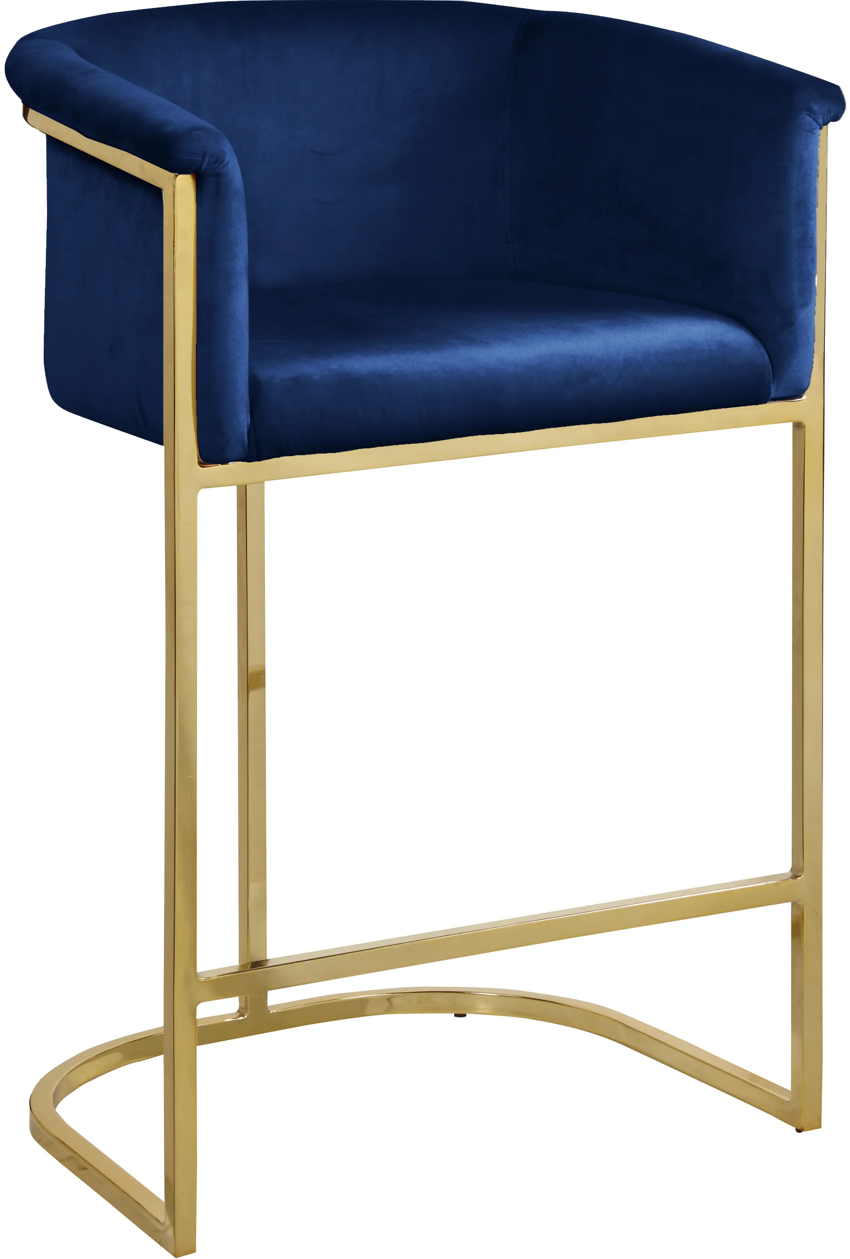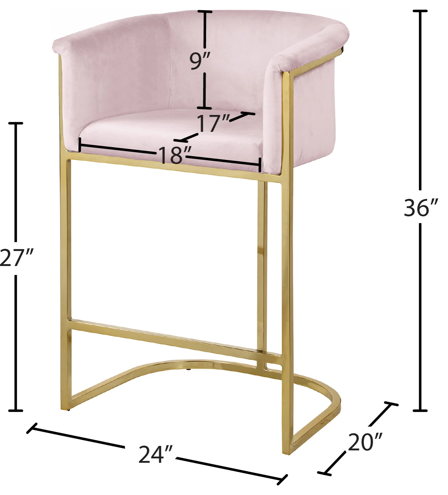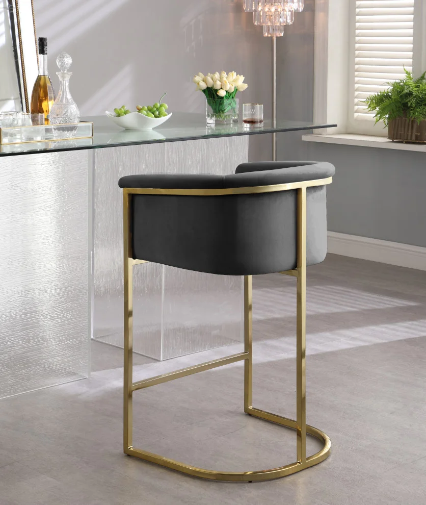 Complement your contemporary home furnishing with this Donatella Pink Velvet Stool from Meridian Furniture. Its curved design and rich beige velvet upholstery provides a comfortable, soft, luxurious seat for you to relax in, while also adding a touch of elegance to your living space. Its gold steel base adds the perfect balance to the stool’s soft pink color, in addition to holding the stool up to counter height and providing durable support for years to come.