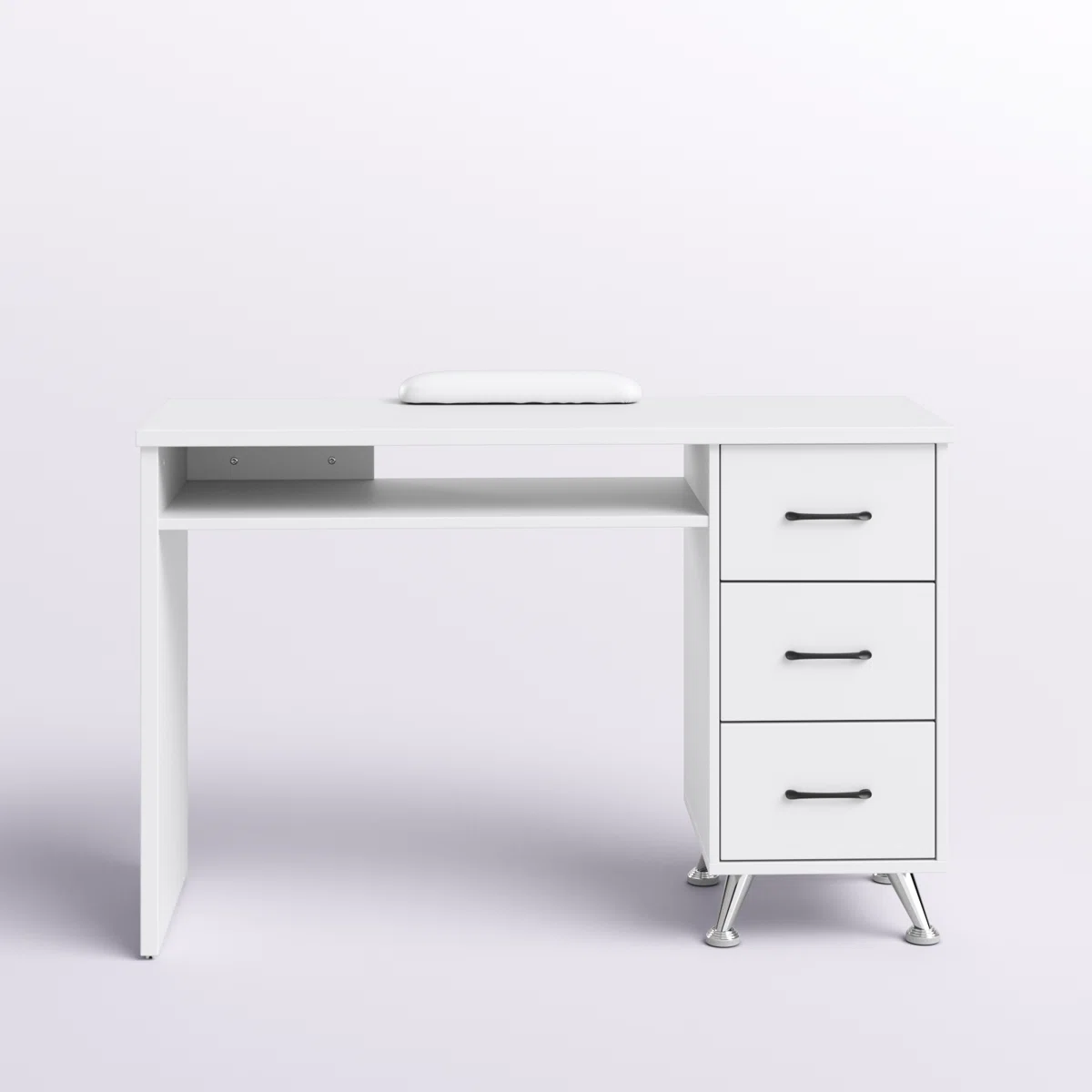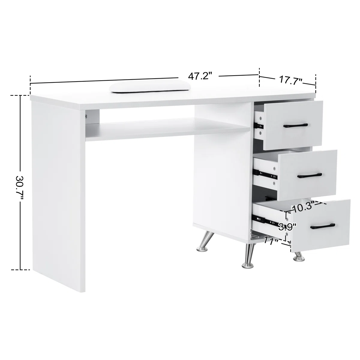 - With 3 spacious drawers and a half panel for manicure light storage, this desk helps organize tools and accessories efficiently.