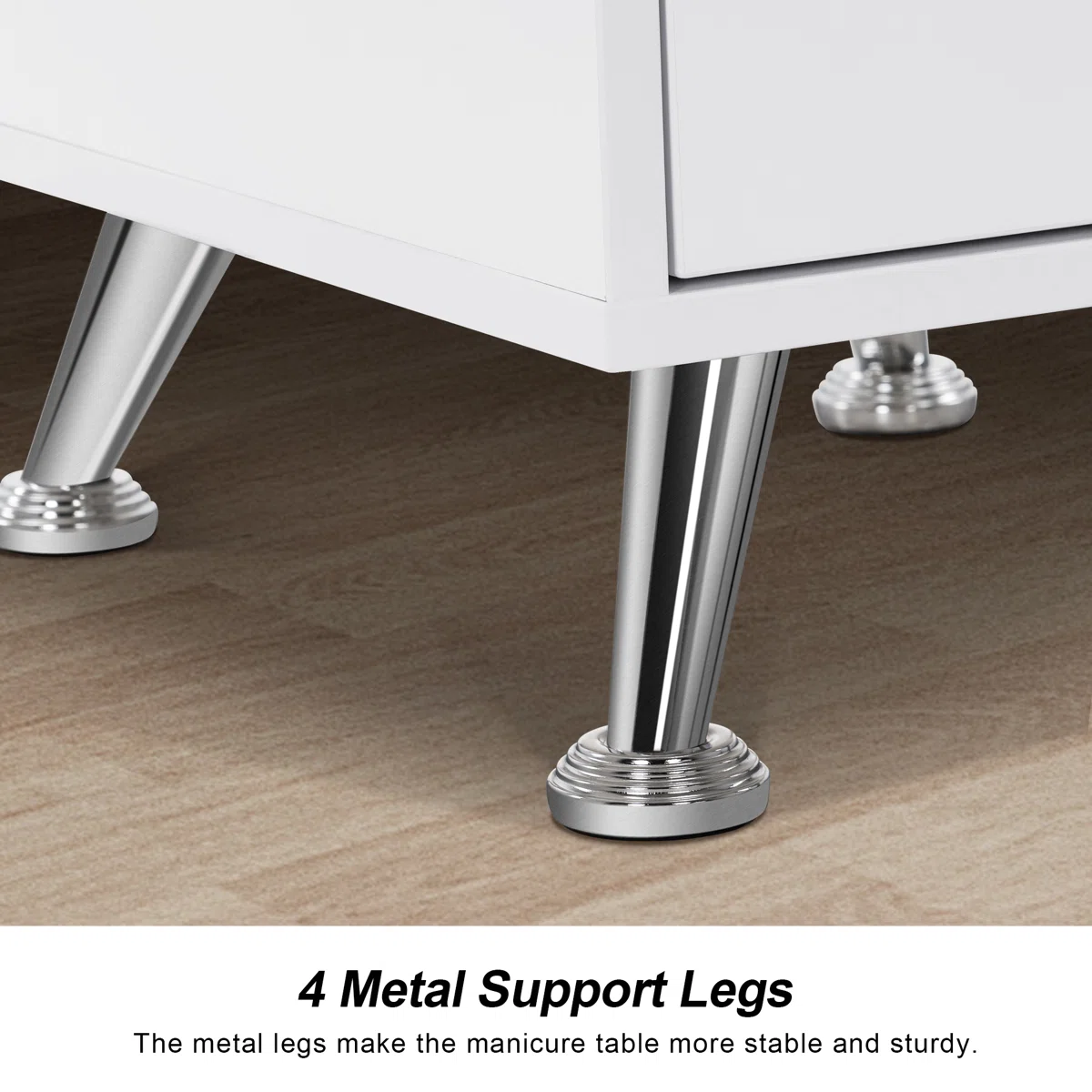 - The smooth, quiet drawer slides and acetone-resistant top material make this nail table easy to clean and maintain.